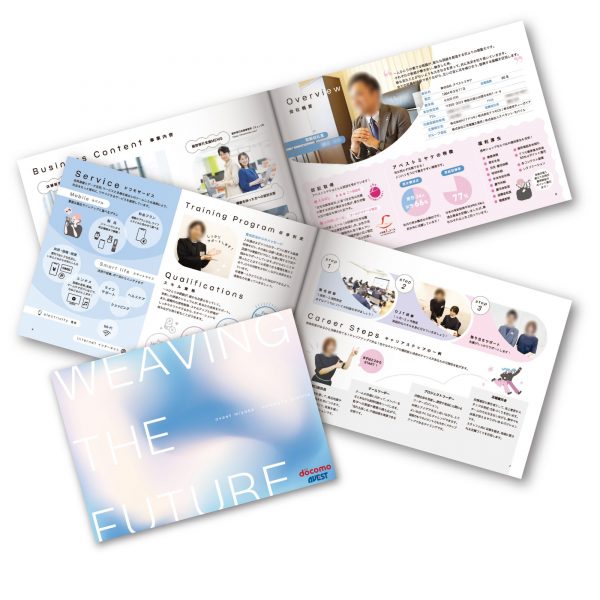 モバイル通信事業を行なっている企業様の採用案内を制作致しました。 情報を詰め込みすぎず、読み手の心地よさを優先したデザインです。
