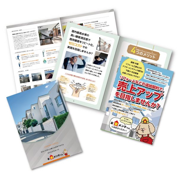 リフォーム業を運営されているお客様の会社案内と営業ツールを制作致しました。 グレーを基調とした会社案内は、誠実さとクリーンな印象を大切に。 視覚的に整理し、営業現場で武器になるツールを目指しました。