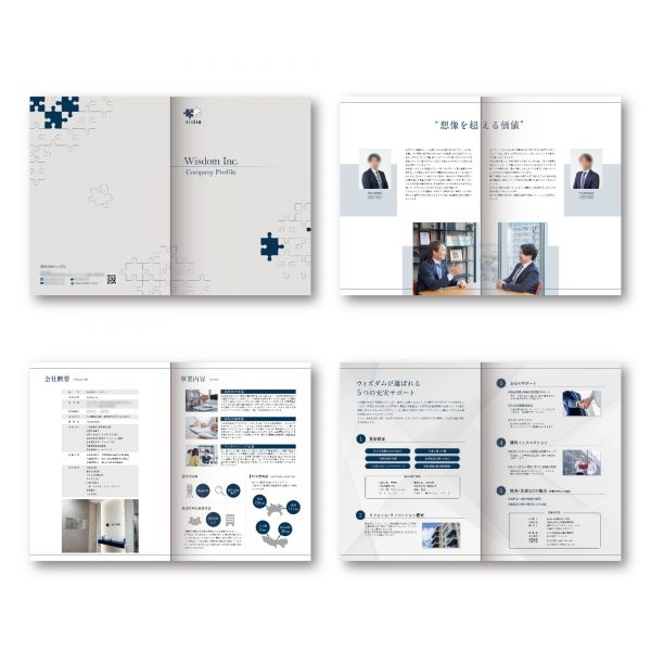企業ロゴのパズルを大胆に配置し信頼感と誠実さを印象づけるデザインです。