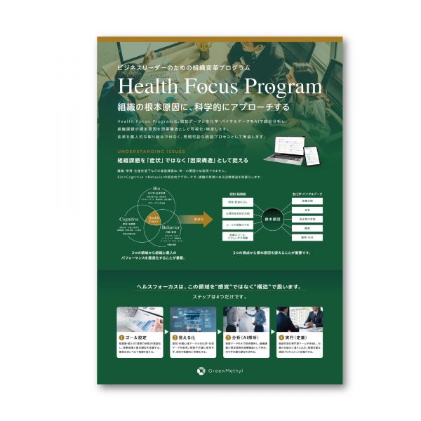 プログラムの先進性と信頼性を両立させるため、深いフォレストグリーンを基調とした重厚感のあるデザインに仕上げました。