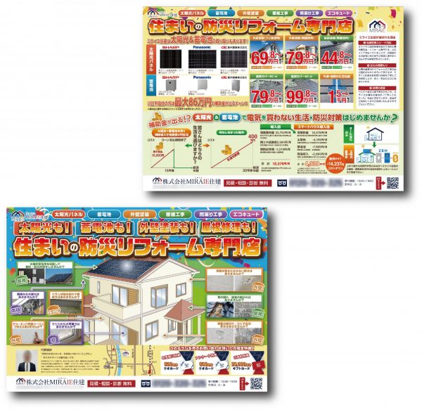 A4 三つ折り6P・B5チラシ・カード・領収書・角2封筒・名刺