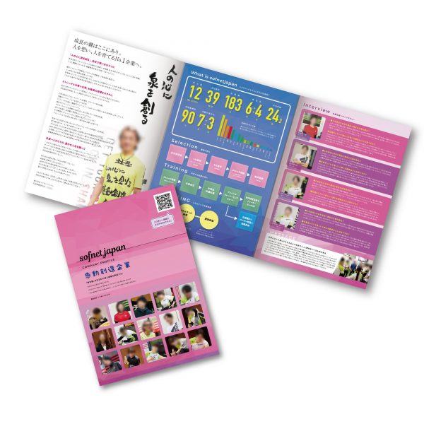 ストレッチ専門店を運営されている会社様の採用案内を制作致しました。 写真を多く使い親近感のある、エネルギッシュで明るい雰囲気のデザインです。