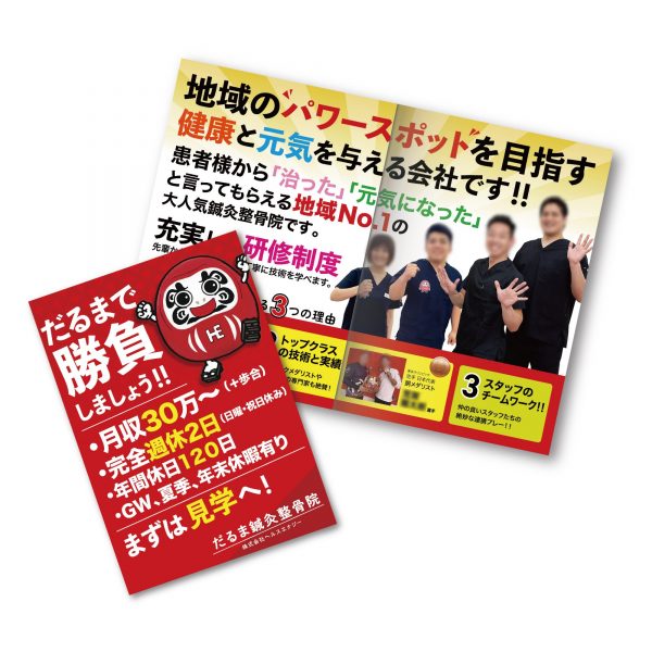鍼灸整骨院を運営されている会社様の採用案内を制作致しました。 熱い仲間を求めている姿勢が伝わるデザインです。